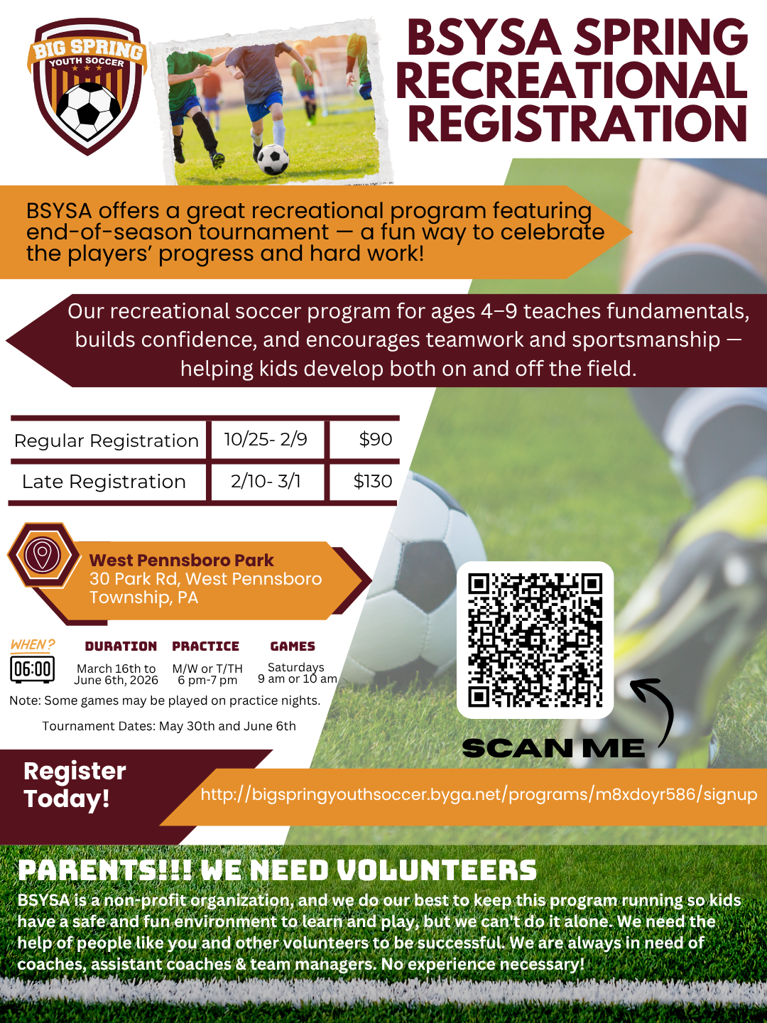 For further information regarding our Recreational Soccer Program, please reach out to our Rec Director, Shane Mowrey, at recdirectorbsysa@mail.com.